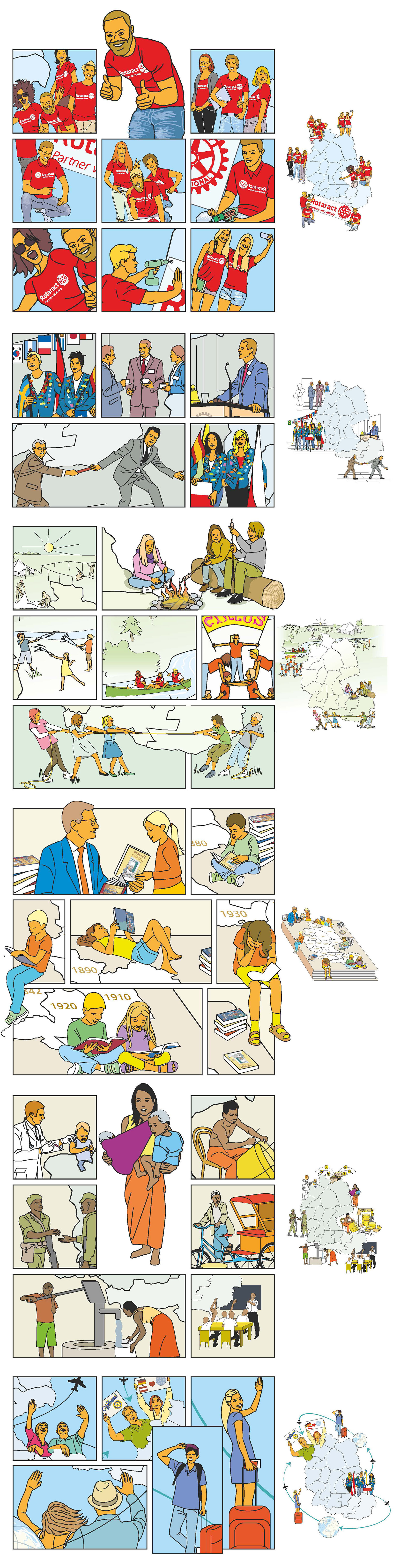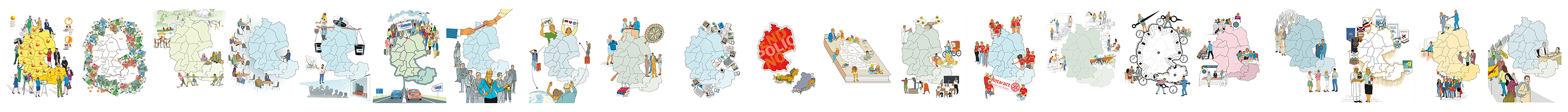 Illustrative Deutschland-Österreich-Karten mit Informationen über die einzelnen Distrikte. Für das Rotary Magazin Deutschland.